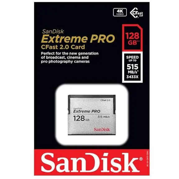 The SanDisk Extreme PRO CFast 2.0 memory card delivers the high performance that broadcast, cinema, and photography professionals demand today. This memory card for cameras features a Video Performance Guarantee of 130MB/s (VPG 130) which enables cinema-quality 4K video recording (4096x2160p). And its write speeds of up to 450MB/s and data transfer speeds of up to 525MB/s provide extreme workflow efficiency. Our second generation CFast card, the SanDisk Extreme PRO CFast 2.0 memory card was designed in collaboration with leading-edge camera manufacturers to assure an exceptional user experience from the first shot.