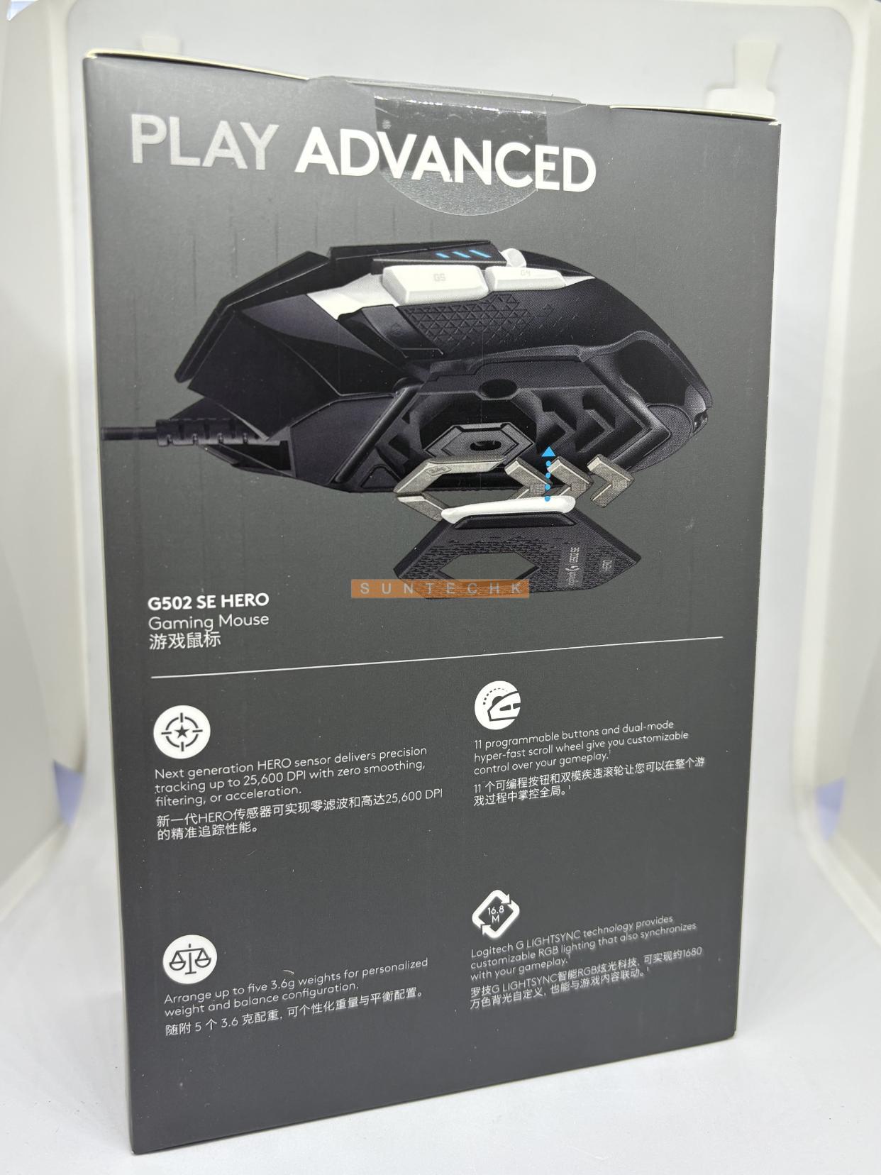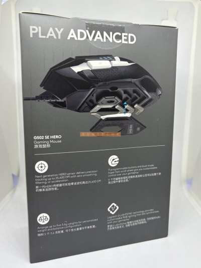 The Logitech® G502 HERO Gaming Mouse is engineered for advanced gaming performance. It features the HERO 25K gaming sensor with sub-micron precision tracking, customizable LIGHTSYNC RGB, onboard profiles, repositionable weights, and more. The G502 is a must-have for any serious gamer who values speed, precision, and customization, or any casual gamer who wants to level up their play.