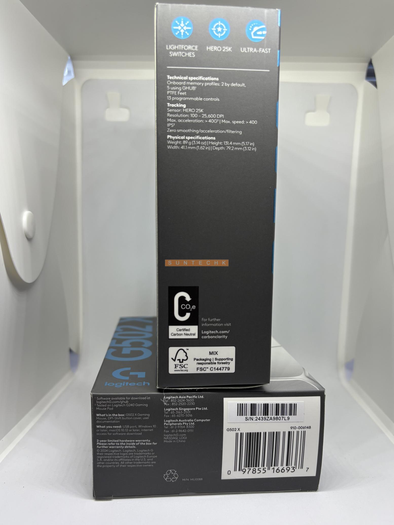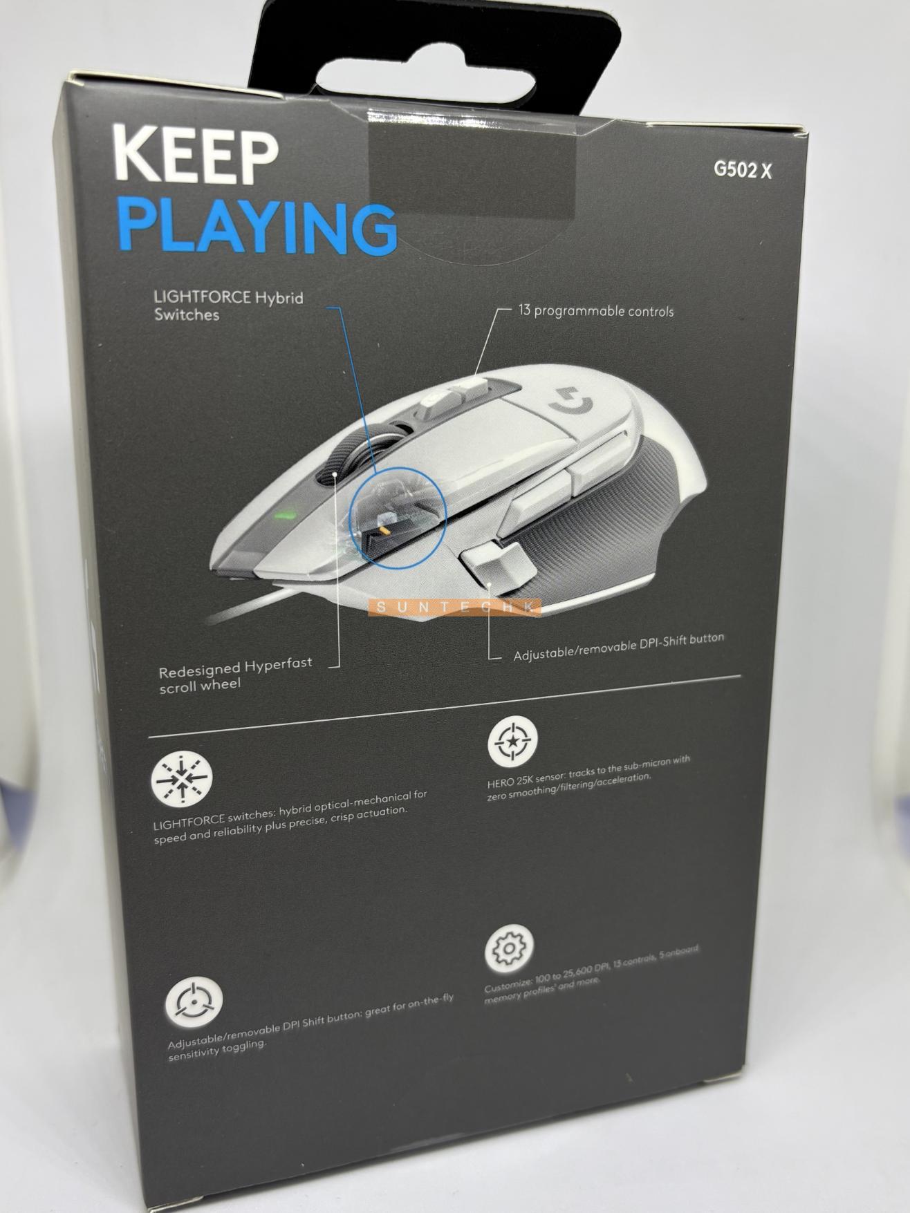G502 X is the latest addition to the legendary G502 lineage. Redesigned to achieve an impressive weight reduction down to 89 grams. Featuring our first-ever LIGHTFORCE hybrid optical-mechanical switches and HERO 25K sub-micron sensor.