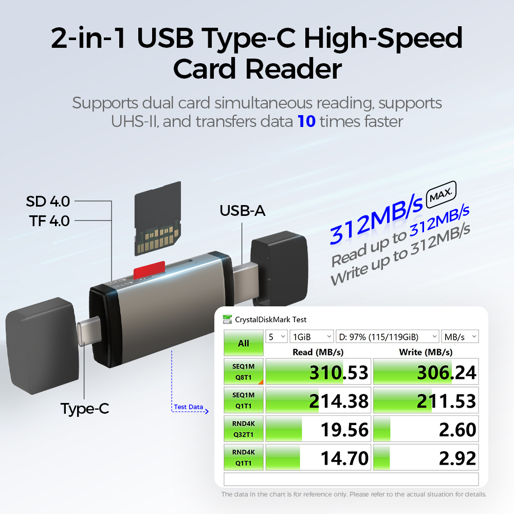 Supports dual card simultaneous reading, supportsUHS-Il, and transfers data 10 times faster