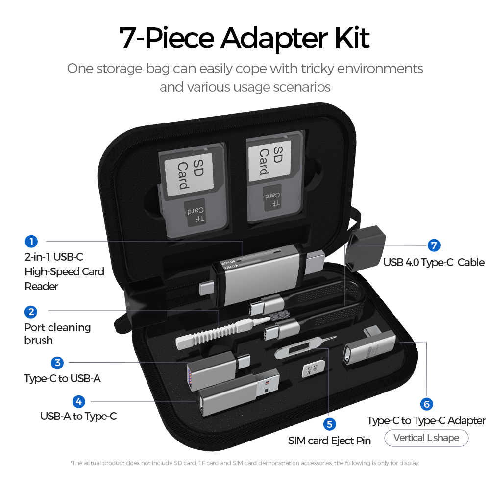 Whether it's photography, office or travel, the 7-piece adapter setmeets all your needs and opens a new era of data transmission